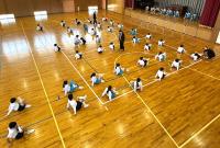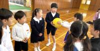 今日の学習は「When is your birthday? My birthday is 月 日.」でした。5,6年生は授業で月や日の言い方を学習しているので、中・低学年の誕生日の言い方を教えてあげていました。イングリッシュクラブの児童がデモンストレーションを行い、いざ全体で!紅白に別れて、英語で誕生日を聞きながら、誕生日順の列車を作りました。チェックを受けて赤白ともに合格でした。