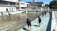 6月5日にみんなできれいに掃除したプール。水もいっぱいになり、水温気温ともに上昇し、待ちに待ったプール開きを行いました。校長と児童代表が安全祈願をした後、6年生の模範泳を見て、全校でプールに入水しました。子ども達は、「冷た~い」「気持ちいい~」と大喜び。いよいよプールのシーズンがスタートしました。西北台小学校最後のプール学習。安全を最優先にしながら泳力が向上するように学習を行います。