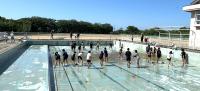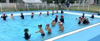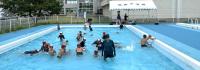 羽咋小学校のプールで1,2年生と羽咋小の2年生とのプール学習交流をしました。ウォーミングアップで流れを作ったり、宝探し競争をしたり、自由時間で交流したり、一緒に楽しみました。3~5年生は交流はありませんでしたが、大プールで気持ちよく泳ぎました。羽咋小のプールは井戸水を使っていて、暑い日でもひんやりとしていて気持ちいいのです。来年度からはこのプールで泳ぐんですね。