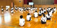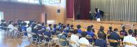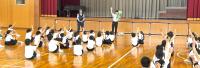 羽咋警察署生活安全課の小見さんと一ノ宮駐在所の浅瀬さんのご協力をいただき不審者対応訓練を実施しました。図工室で授業をしていた児童は職員室に避難し、警察官が到着するまでの間、職教員複数名で対応しました。不審者を確保した連絡後に体育館で防犯教室を行いました。おまわりさんから「いかのおすし」や「子ども110番の家」について確認していただきました。いつどこでそのような場面に遭遇するかは分かりません。自分の命は自分で守る意識をもち、遊ぶときも安全なところで!とお話をしていただきました。その後、教職員の対応についてご指導をいただきました。小見さん、浅瀬さんありがとうございました。