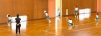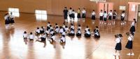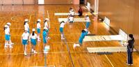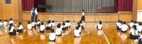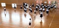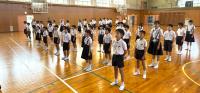 タスキをかけて走ったり、タスキを渡したり受け取ったりしたことがない児童ですので、本番当日に向けて団ごとに練習をしました。走る際は、タスキをズボンの中にしっかり入れることで脚に引っかかったり落としたりしません。また、タスキを渡すときは、両手でタスキを広げて渡します。次の人が受け取りやすいようにすることで、落とすことを防ぎます。相手への思いやりですね。初めてだったことと、雨で体育館という限られた小スペースでの練習だったのでなかなかうまくいきませんでした。まだまだ練習を重ねたいですね。