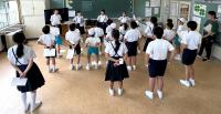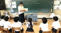 羽咋市では小学校卒業までに英検5級取得を推進しています。数年前から5年生から外国語科が教科として必須となり、英語科を週2時間学習しています(3,4年生は英語活動)。本校では1,2年生も年間10時間を目安に英語に触れる活動を行っています。また、毎週水曜日をイングリッシュデーとして英語の歌を歌ったり、給食時に英語の歌をBGMとして流したりしています。授業のあいさつなども英語を使っています。