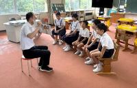 年間1万人以上の子どもから大人までを指導している「相山慶太郎」先生に走ることについての指導をしていただきました。小学校で陸上の指導、大学で駅伝部のコーチ、ご自身も現役選手として活躍されている陸上のトップアスリートの先生です。様々な指導をしながらご自分でもトレーニングを継続さており、8年間で400mの自己ベスト記録を縮めることができたそうです。しっかりとした目標をもつことで続けられれているとおっしゃっていました。