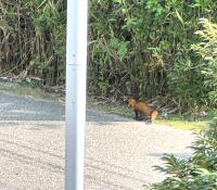子ども達の授業の様子を観に、校内を巡回していたときです。3・4年教室前の窓を眺めてみると、校門の前の草むらの前になにやら動くものを発見!「イタチかな? テンかな? 」距離もあり、日陰だったので目視では分からず、カメラの望遠を使って撮影してみました。