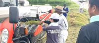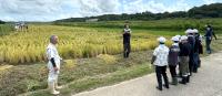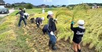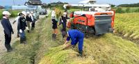 5月に苗植えをした田んぼの稲が立派に生長していました。十数センチの苗が4ヶ月の月日を経て、子どもの腰の高さを超える稲になっていました。JAはくいの西村さん、柴垣町の松田久さん、濵田さんのご指導の下、鎌で稲を刈り取りました。ほとんどの児童は初めてだと言っていましたが、ひと株ずつ刈り取っているうちに徐々に上手になっていきました。刈り取った稲穂を機械で脱穀もさせてもらい、機械から玄米をトラックに移し替えるのを見ながら、「すげえ~」「オレの3年分の米だ」など声を上げていました。昨年から高騰しているお米。1粒1粒を大切にしながら、これからも「いただきます」としっかり食べてほしいですね。