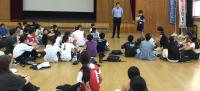 今日は3~6年生が「はやく走るための身体の使い方」をテーマに講義と実技指導を受けました。18日のタスキリレーでは、今日の学びを活かして、チームのために全力を出し切ってくれるものと感じました。最後に、ポイントが記載されているカードをいただき、各チームのタスキにサインをしていただきました。新しい行事ですがより一層楽しみが増しました。