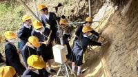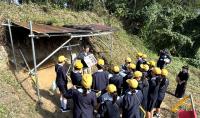 理科の学習で地層の学習をした後に、EIZOと里山海道の間にある寺家遺跡の地層を見学に行きました。ここは砂丘でできた地層で、層が50センチほど色が変わっていました。その50センチの厚さには、縄文時代から平安時代の歴史があるそうです(出土した土器から推測)。そこから出土した土器も触らせてもらいました。また、子ども達は砂の層にも実際に触り、硬さの違いを実感していました。貴重な本物体験をすることができました。今後その場所には遺跡公園を建設する予定だそうです。解説をしていただいた市歴民の学芸員の中野さん、小船井さんありがとうございました。本物っていいですね!