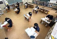 4月から11月までの学習の定着度について調査を行いました。1~4年生は国語と算数の2教科、5,6年生は国語、算数、社会、理科の4教科です。定着していない部分は3月までの期間で帯タイムなどで補充を行っていく予定です。児童は問題に真剣な表情で向かっていました。さて、出来はどうでしょうかね。