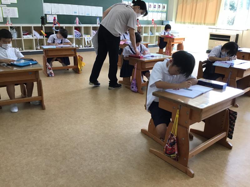 9月4日(月)から約1ヶ月間、月曜と水曜のチャレンジタイムで、全校英語学習に取り組みます。5級は5・6年教室で行うなど、受検級に合わせて、学習します。聞こえてくる英語に真剣に耳を傾けたり、友達と大きな声ではっきり単語の発音をしたりしている様子が見られます。この期間を通して、英語を学ぶことの楽しさを感じてくれたら嬉しいです。