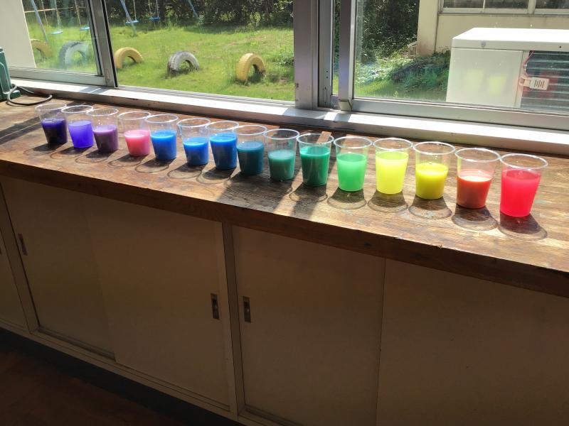 色水を作る過程をとても楽しんでいました。どの色水も素敵ですね。