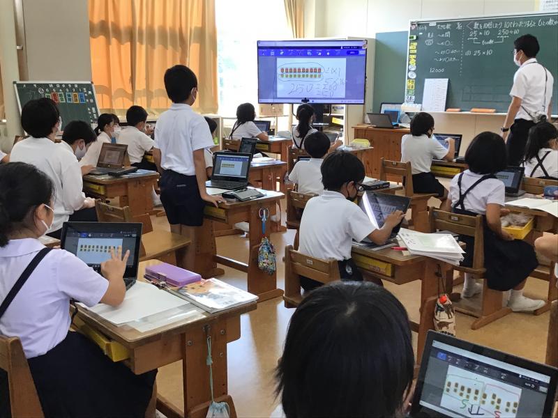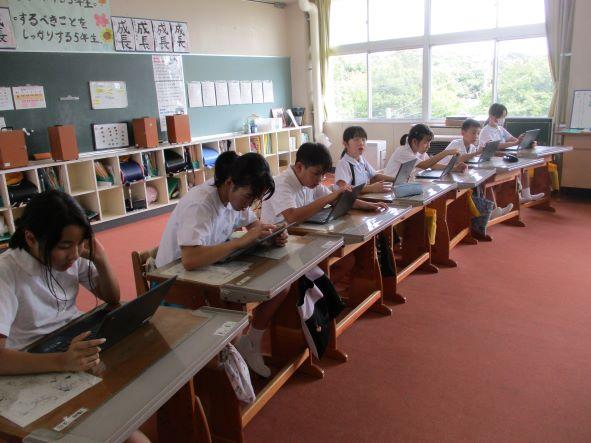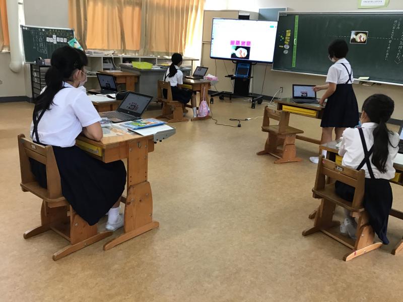4~6年生は、互いの考えを共有し、学び合いを深めるためにICTを活用していました。