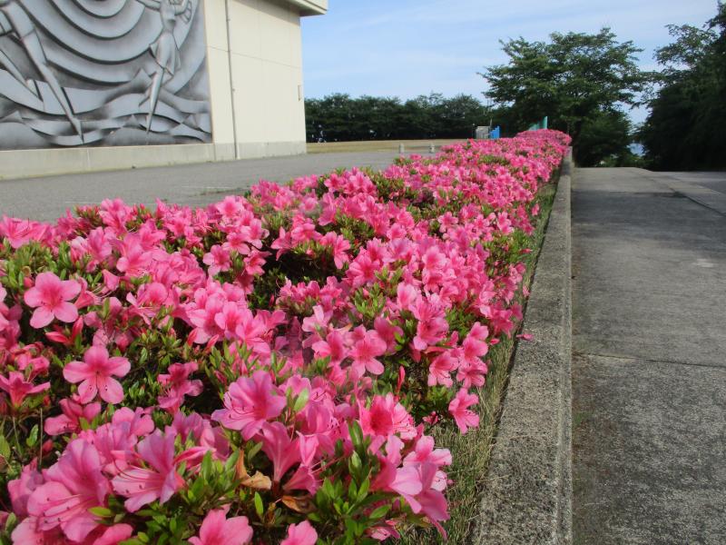 前々から気になっていた、花壇の手入れを五月中旬頃に実施しました。どこからか飛んできて、力をつけたシバが蔓延っていてなかなか除去が大変だったのですが、シルバーの方のお力を借りて風通しの良い状態にできました。シバを除去するだけでなく、サツキの木の剪定もしていただき、すっきりとしたところ見事に開花しました。遠くに海も見えて見事な美しさです。散歩がてら、眺めて頂ければ幸いです。