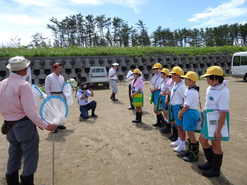 5年生が柴垣海岸で、県指定天然記念物であるイカリモンハンミョウの観察を行いました。成虫のエサや幼虫のすみかなどについても教えていただきました。絶滅危惧種で、普段は捕まえることはもちろん触ることもできない希少昆虫です。子どもたちは、目を輝かせながら観察した後、自然に返していました。貴重な体験ができました。