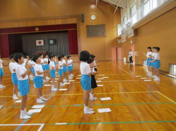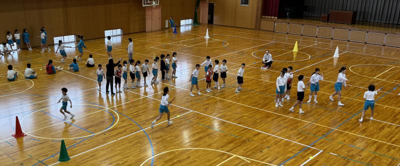 今年度も朝の活動として、「おはようランニング」通称「おはラン」を体育館で行っています。今年度は7:55スタートで、5分間全校で走ります。内側が低学年、外側が高学年になっています。