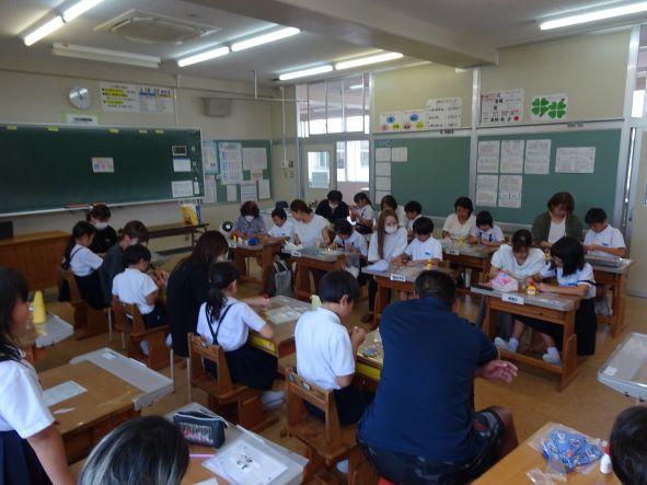 他の学年は、北陸電力の方から電気のお話を聞き、LEDライトを作りました。国立能登青少年交流の家の方、地域の岡田先生からも、身近なものを使った科学の工作を教えて頂きました。子どもたちの科学への関心を高める楽しい時間となりました。
