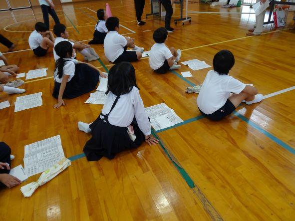 1~3年生は、授業参観、4~6年生は、親子学級を行いました。1年生は外国語活動を行い、おうちの方や地域の方に「How are you?」と挨拶をしたり、英語での動物の言い方を学習したりしていました。6年生の親子学級では、フリスビードッジボールや障害物競走などをして、元気に体を動かしました。小学校最後の親子学級をとても楽しんでいる様子でした。