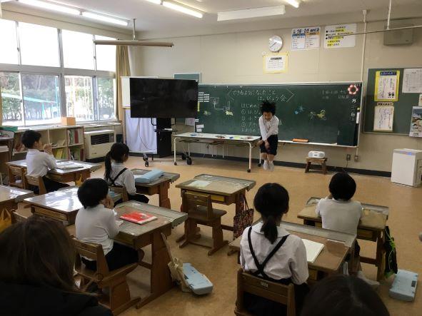 今年度最後の学校公開を行いました。国語や体育などの授業を、公開しました。2年生は、生活科で「2年生でできるようになったこと」として、九九を速く正しく唱えられるようになったこと、なわとびが上手になったことなどを発表していました。