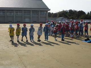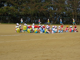 低学年と高学年に分かれて,走る順番とコースの確認をしました。