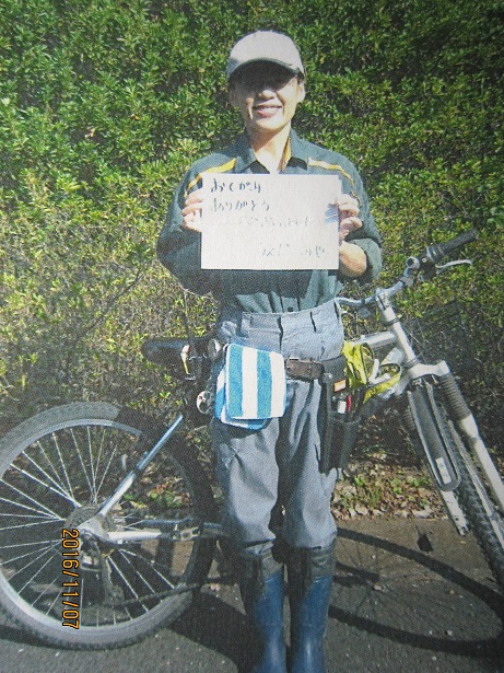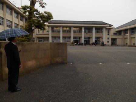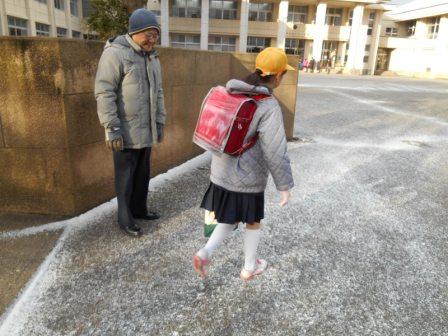 寒い今朝も人権擁護委員の土田さんが挨拶運動にいらっしゃいました。
