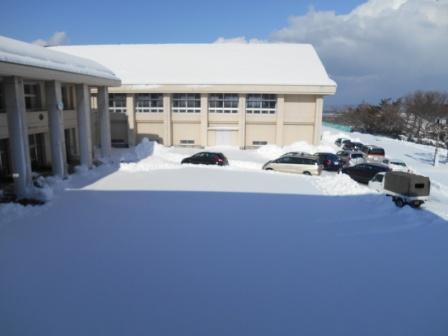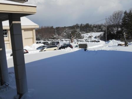 こんな感じです。駐車場は職員の駐車スペースのみ、かろうじて空いています。