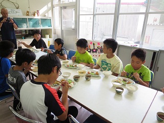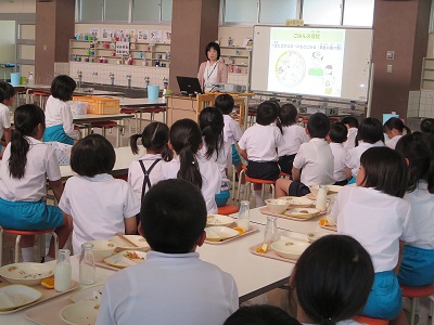 1月18日(月) 毎月1回のお楽しみ、外国語活動がありました。今月は、食べ物の言い方を学習しました。初めは、いつもの言い方と違って戸惑いましたが、慣れてくると「スパティ」、「オムレット」「カリーアンドライス」など上手に発音していました。レストランで「フレンチフライ」と注文するかもしれませんね。