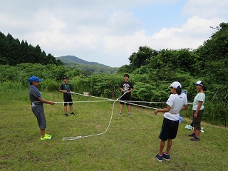本日の朝休み、2年生と4年生が一緒に8の字なわとびの練習をしていました。