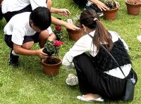 PTA育成委員会の企画で、家族で花の苗植えの活動を行いました。子どもは一人一花、そして、各家庭一花(シクラメン)を鉢植えしました。子どもの鉢は学校で子どもがお世話をします。各家庭の鉢は自宅へ持ち帰り、家族で一緒にお世話をします。花の育て方を調べたり、花のお世話をしたりしながら,家族で会話の花を咲かせてほしいですね。