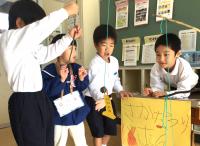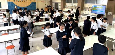 児童は3つの縦割りグループに分かれ、それぞれのブースで説明を聞き、作業や活動に取り組みました。児童は「わぁ~」「やったあ」「へえ~」などの声と同時に、目が輝き、笑顔を見せていました。実験や体験から得られた学びや喜びを、ぜひ家に帰って家族に【アウトプット】してほしいものです。