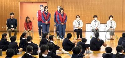 羽咋警察署生活安全課の坂下様より薬物についての学習会をしていただきました。「薬物とか、ドラッグとかという言葉は聞いたことはありますか」の問いに、子どもは全員手を挙げていました。内容は、薬物(ドラッグ)だけでなく、喫煙や飲酒についてもお話をしていただきました。未成年の喫煙や飲酒は健康を害すると子どもは知っていましたが、より広い知識や理解で、なぜ良くないかについてしっかり学ぶことができました。