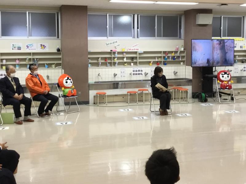 12月16日(水)に人権集会を開催しました。本校では人権週間の機会に毎年行っているものです。今年は「おもいやり」がテーマ。代表委員会の5年生と6年生が日常生活のシーンを取り上げた寸劇の内容で話し合いをしました。続いて人権擁護委員の山本様に絵本「はりねずみと金貨」の読み聞かせをしていただきました。最後にみんなで「スマイルアゲイン」を合唱しました。この集会の時間と空間はとてもあたたかい雰囲気に包まれていました。