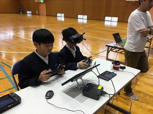 羽咋ドローンズの方5名をお招きして、ドローン体験教室を行いました。ドローンの名前の由来や空を飛ぶ仕組みを教えて頂いた後、シュミレーターを使って、ドローンの操作を体験しました。子どもたちは、興味津々でコントローラーを動かしていました。実際のドローンを飛ばしている様子も見せてくださり、科学の面白さを感じていたようでした。貴重な体験活動を行うことができました。