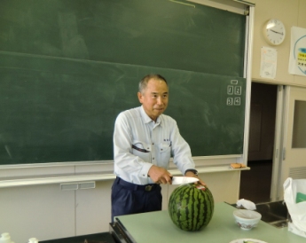 児童は,自分たちが育てた野菜ということもあり,意欲的に調理し,そして,もりもり食べました。さらに,地家先生からサプライズでスイカのプレゼントもあり,とても盛り上がりました。