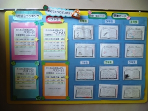 水泳記録会では,緊張の中,何人もの児童が自己ベストをマークしました。個人種目では,各1名が1位,3位に入賞しました。また,団体種目の6年男子のリレーでは,3位に入賞し,盛り上がりました。