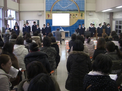 寒い体育館でしたが、1・2年生の群読で