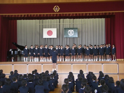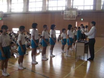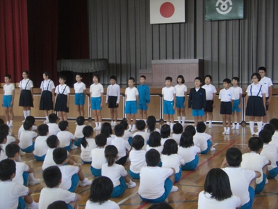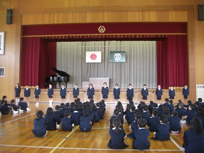 校歌、表彰、校長先生のお話、生活目標のお話に