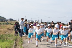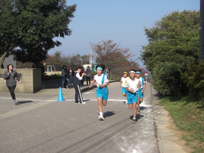 すばらしい晴天のもと、縦割り班対抗駅伝大会