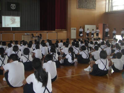 給食後は羽咋小の坂井栄養教諭から、給食についての