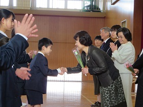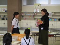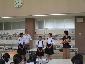 校長先生の紹介のあと,児童を代表して図書委員長から花束とお礼の言葉を贈りました。