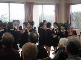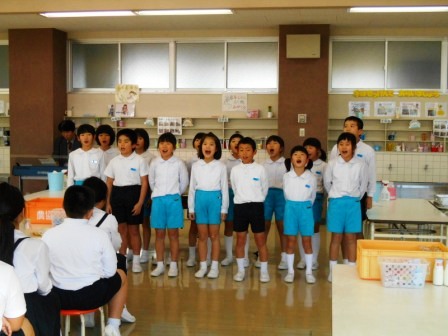 それから,全校児童でお礼の気持ちをこめて「Smile Again」を合唱しました。