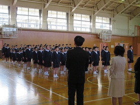 始業式では,校歌の歌詞にある「心合わせて,うたおうよ♪」の通り