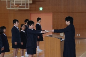 県PTA大会の席上で本校の児童と保護者が表彰されました。