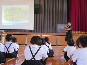 低学年では2年生が1年生に「どんなところへ行くか」発表していました。