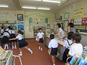 みんな図書室へ行って,夏休み前に借りた本を返して