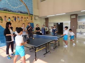 赤,白,青,黄の各団で親子のダブルスリーグ戦を行い,親睦を深めました。