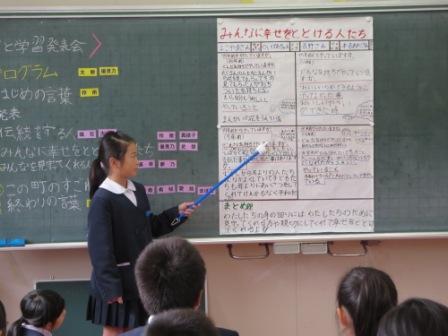 ↑「あいさつ運動」の後には,6年生の児童から反省や励ましの言葉があります。