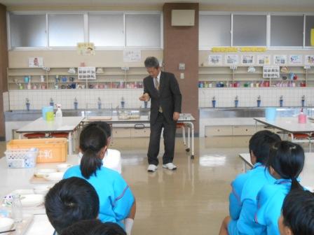 食に関する指導で、栄養教諭の三宅 章子 栄養教諭が来校しました。