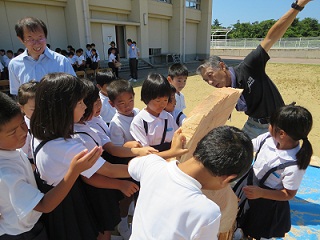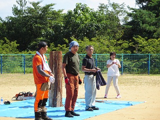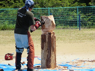 全校登校日 「あすなろカービング倶楽部」によるチェンソー・アートがありました。