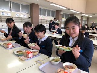 3月16日(水)は6年生の小学校最後の給食です。いつも配膳のお世話をしてくれている用務員の紙谷さんからおしながきのサプライズがありました。ひとりひとりに手書きでつくってくれました。お祝いの気持ちを受け取って6年生はとてもうれしそうでした。最後の給食を味わっていた記念のショット(全員ではありませんことをご了承ください)を掲載します。マスクをとったその素顔は少しばかり大人びてきていました。
