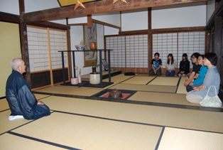 中山久勝住職より蓮光寺の歴史や大茶盛について説明を受けました。