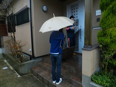 生徒は一軒一軒、手際よく配布していました。